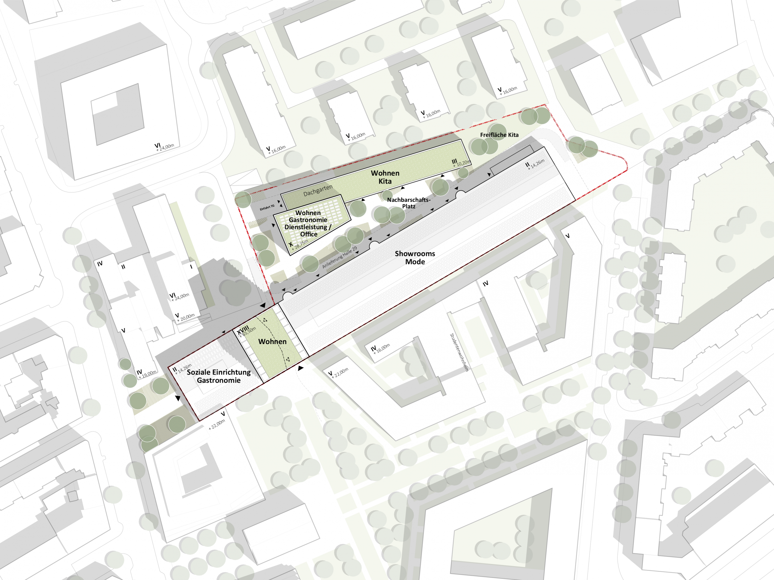Hall 29 remains a place with character. Its industrial architecture continues to define the site while being translated into a contemporary context. Architecture, urban design, and open space interlock to create clarity, atmosphere, and identity. The result is an urban quarter that grows without forgetting, opens up without losing itself. A piece of Duesseldorf that connects heritage and future.
