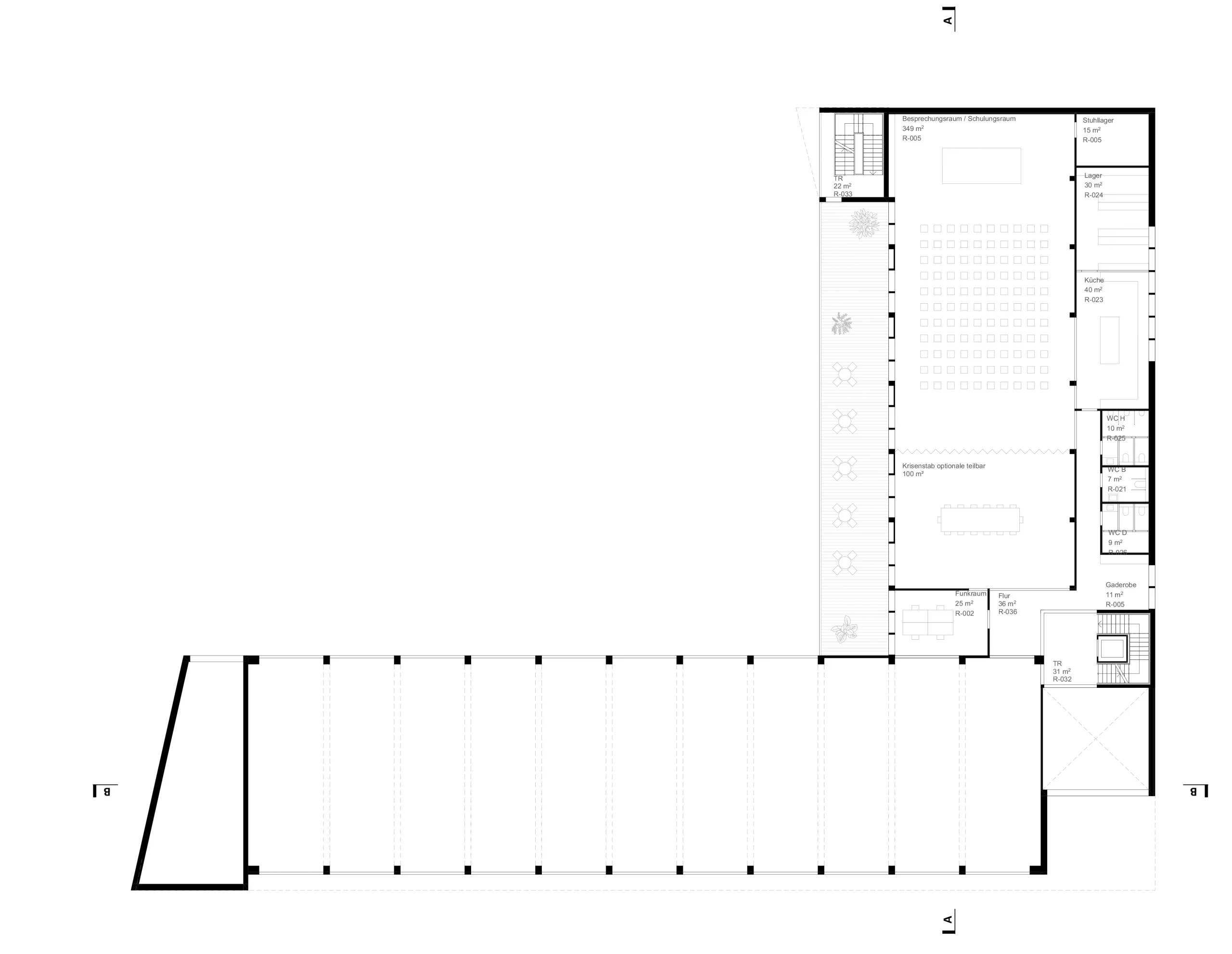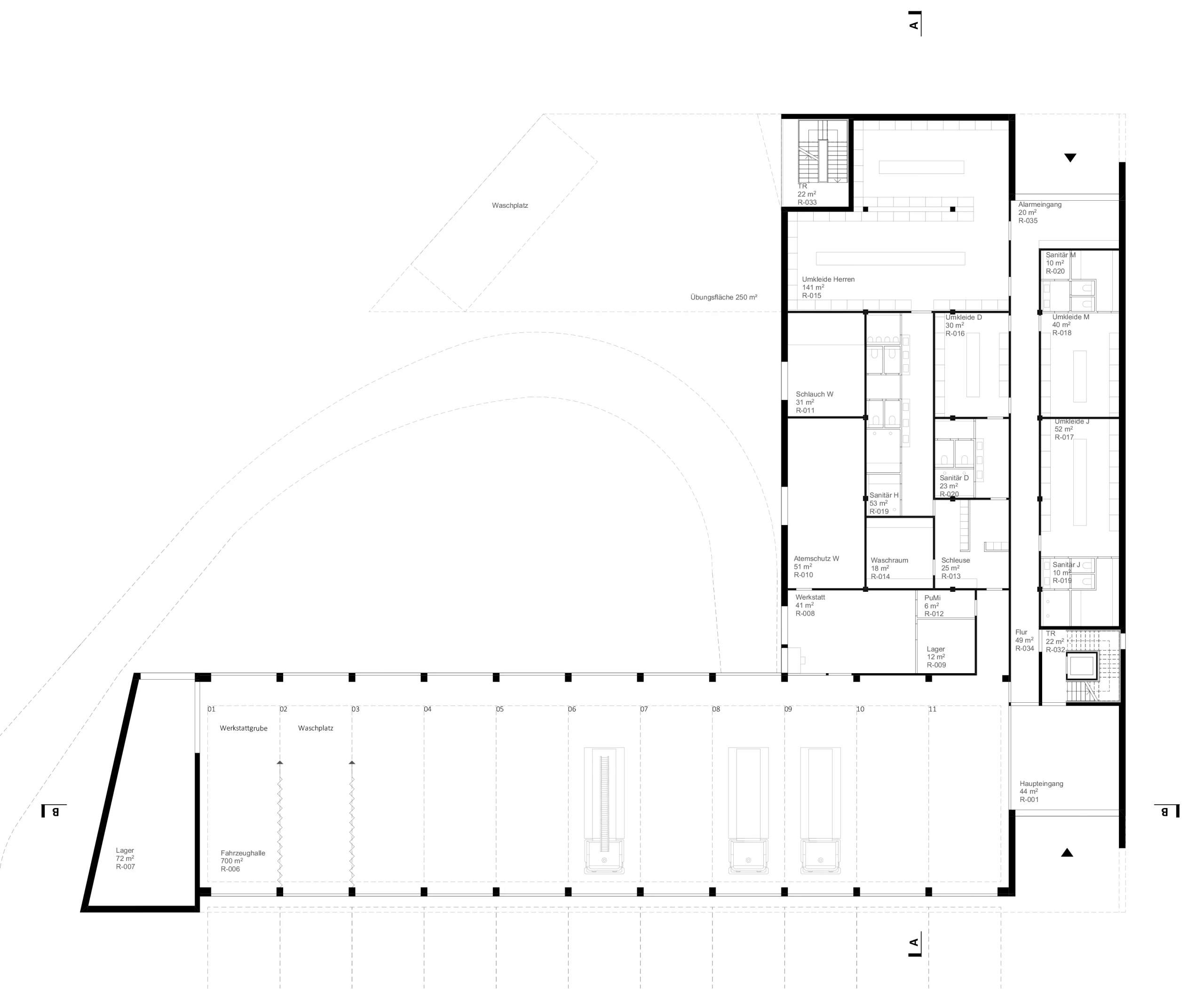 Short distances and carefully planned connections save valuable seconds in emergency situations. The layout therefore prioritizes user needs and the functional requirements of a fire station, ensuring optimal operational workflows and clear orientation.