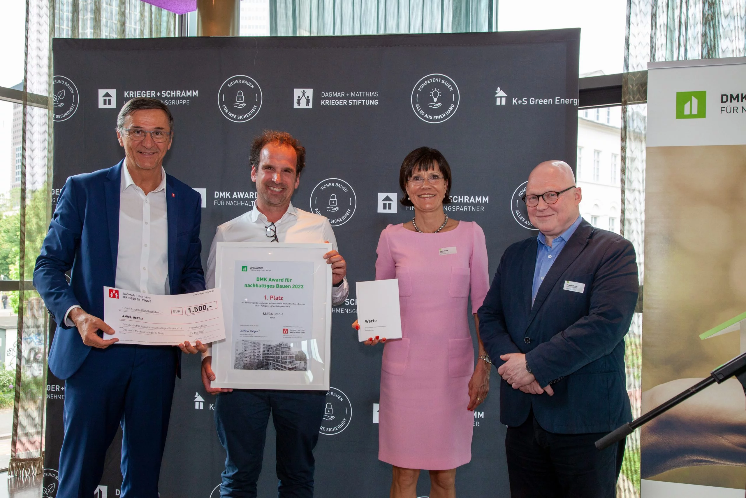 Der DMK Award wird seit 2010 von der Dagmar + Matthias Krieger Stiftung vergeben mit dem Ziel, das Thema Nachhaltigkeit und umweltbewusstes Bauen bundesweit in die Breite zu tragen. Engagierte Architekten, Planer und Projektentwickler sowie Studierende werden gefördert – Ihnen wird eine Bühne gegeben, um ihre Projekte einem großen Publikum zu zeigen. Vor diesem Hintergrund wird der DMK Award durch die Dagmar + Matthias Krieger Stiftung verliehen – unterstützt durch den BFW Landesverband Freier Immobilien- und Wohnungsunternehmen Hessen/Rheinlad-Pfalz/Saarland e.V.