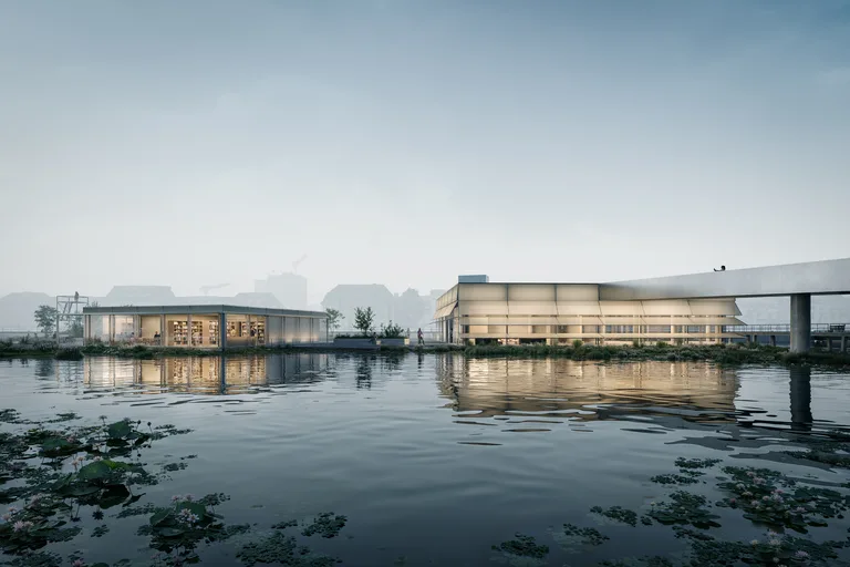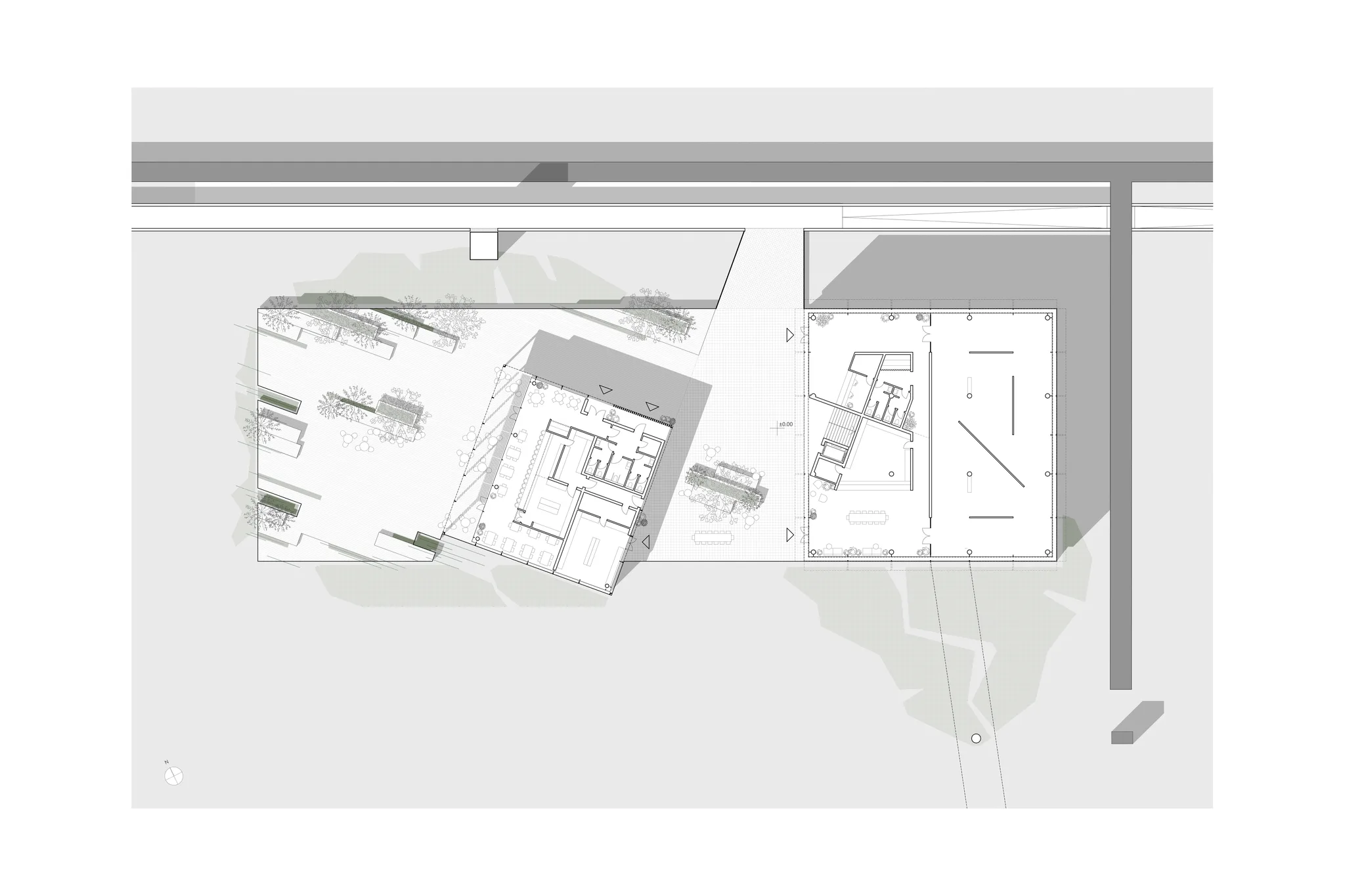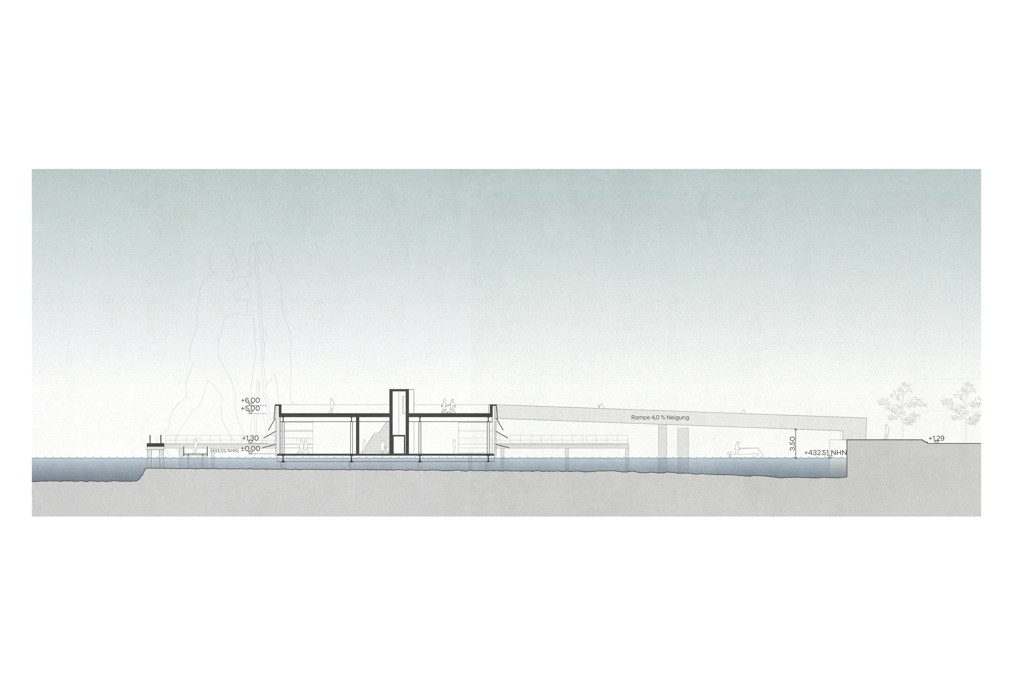 Der Zugang erfolgt über das begehbare Dach, das selbst Teil des Rundgangs ist: ein Ort des Ausblicks, der Information, der Begegnung unter freiem Himmel. Auf Plattformebene öffnet sich das Gebäude mit Café und Freizeitflächen zum Wasser. Das Museum wird so nicht nur Denkraum, sondern Teil einer urbane architektur, die öffentlichen Raum gestaltet und die Stadtgesellschaft einlädt.